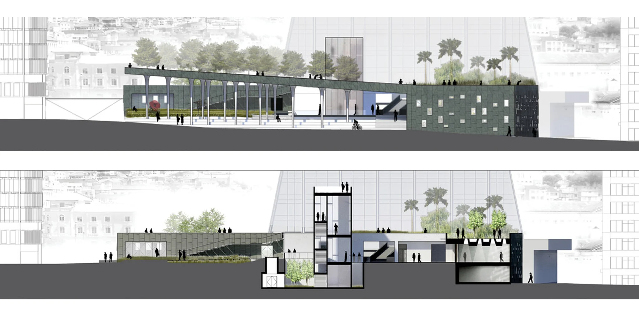 The project proposes to transform a derelict urban surface into a new cultural landscape that provides the city with a new high quality fine grain open space, complimentary to the adjacent Alameda Park; a new urban piece that can act as a catalyzer for future urban transformations in the Alameda district.
